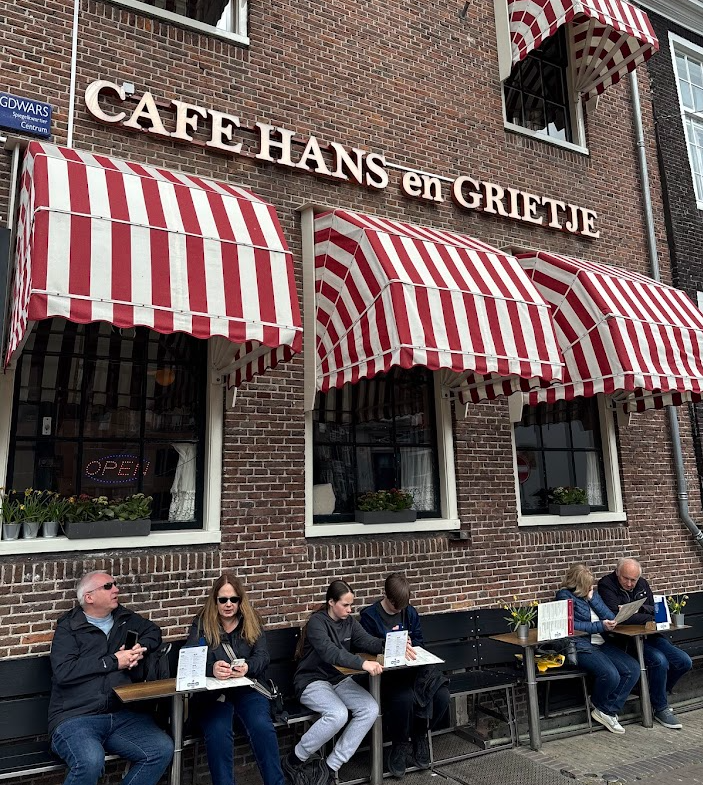 Thursday brought us to the Anne Frank House. We couldn’t go inside—there’s a six-month waiting list for that—but even walking the grounds was moving. To stand in the place where her story unfolded felt heavy and important. Along the canals, we also learned something fascinating about the houses. Many of them lean slightly forward, and at the top there’s a hook. That’s because Amsterdam homes are narrow and tall, so furniture and goods had to be hoisted up with a pulley system instead of squeezed through staircases. Practical, but it also gives the city its iconic look.
