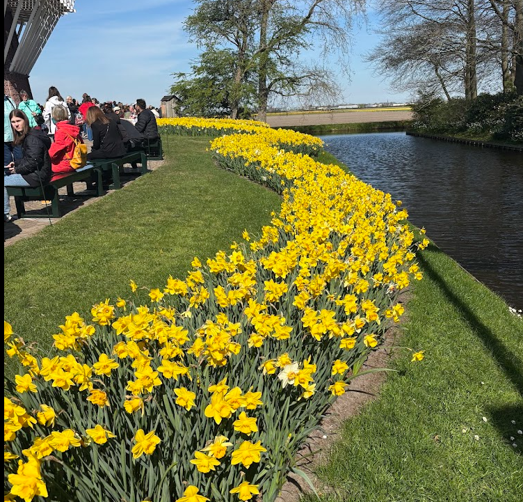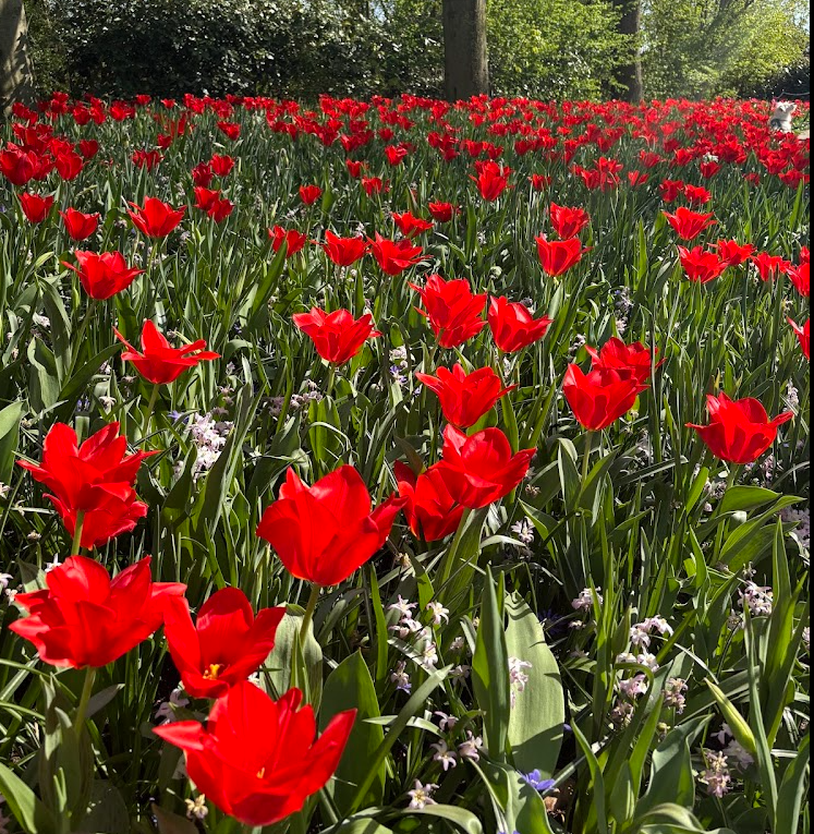 Tuesday we left the city for a bit, heading to Keukenhof tulip farm. The tulips were at about 80% bloom, and even that was jaw-dropping. Acres of vibrant color stretching as far as the eye could see—it’s the kind of place where you just stand there trying to soak it all in. From there, we visited Zaanse Schans, a living museum village that feels like stepping back into the 18th and 19th centuries. Traditional green wooden houses, working windmills, cheese-making, clog-carving—it’s a hands-on history lesson, and seeing those giant windmills turning against the Dutch sky was something out of a painting.