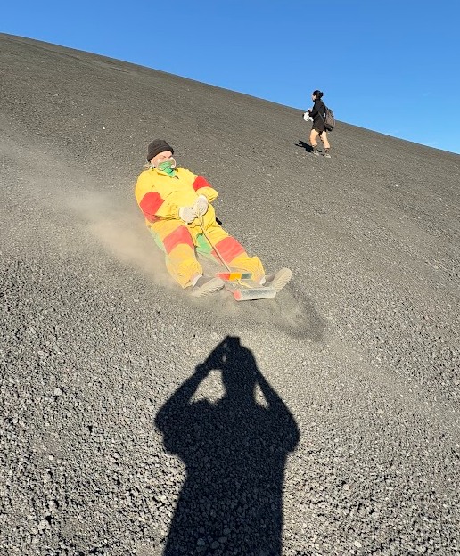 Eventually we reached the top. The landscape stretched out in every direction—raw, volcanic, and alive.Then came the fun part. Volcano boarding.
